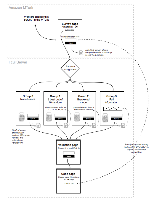 We chose a variation of the classic jelly bean experiment and compared the performance of 4 groups regarding their exposure to social influence (the estimates of others). In each group, we asked approximately 90 subjects to guess the number of jelly beans in a jar.